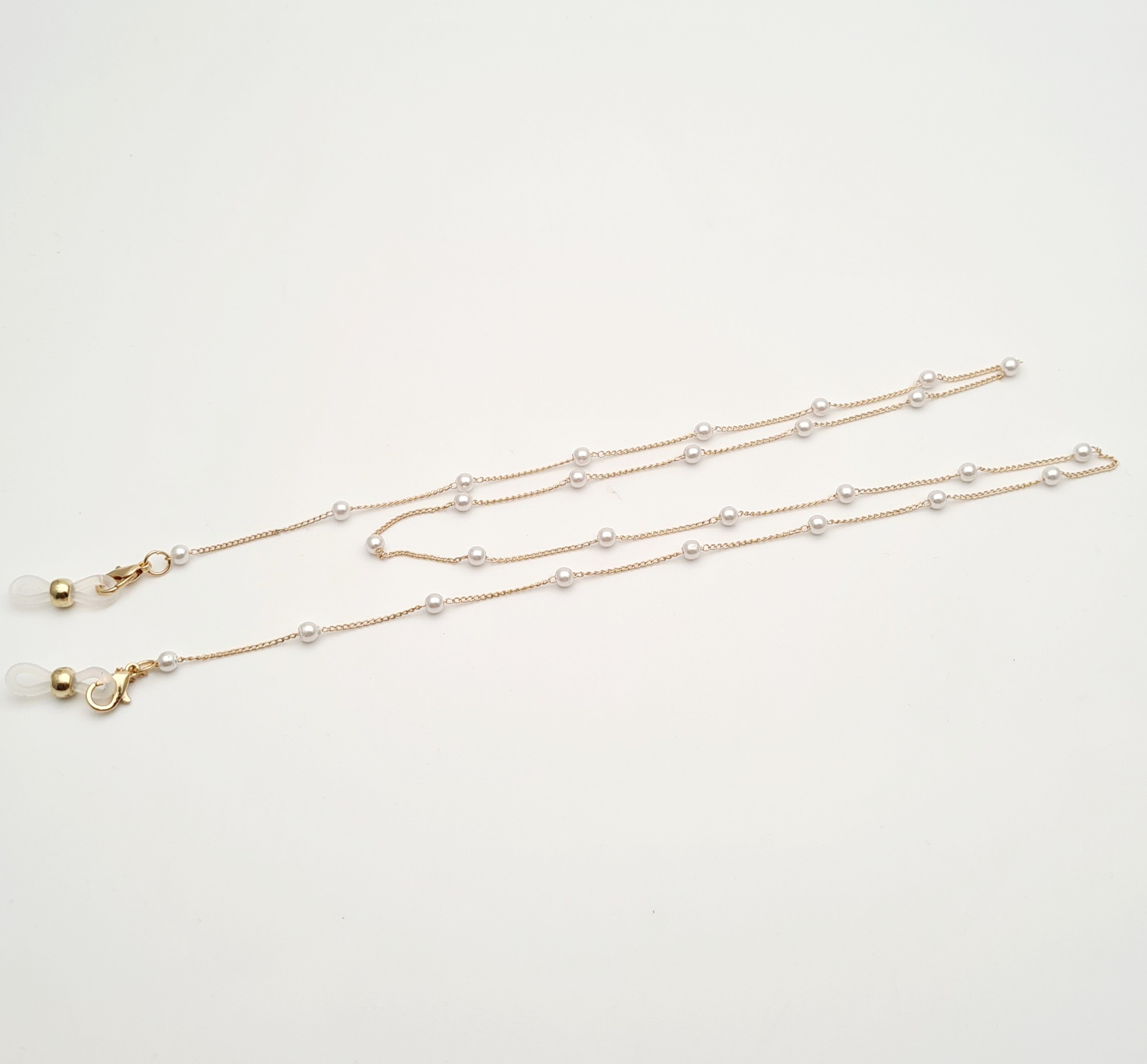Łańcuszek zakończony z dwóch stron gumowymi końcówkami.