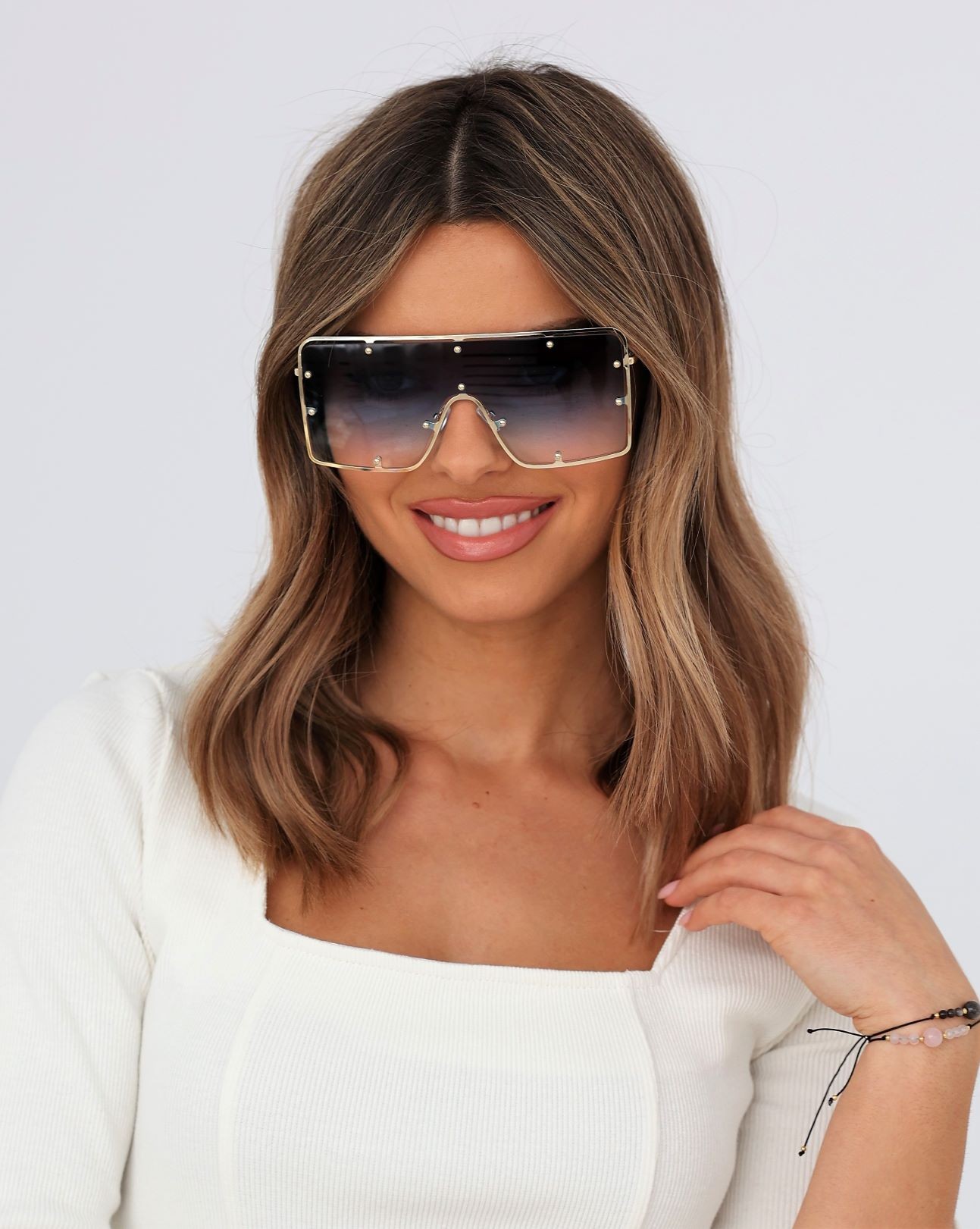 Okulary przeciwsłoneczne damskie, modne okulary gwiazd, duże okulary prostokątne, występują w trzech kolorach: