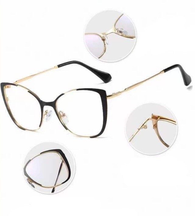 Okulary damskie zerówki. Ramka okularów wykonana z metalu. Zausznik metalowy. Szkła BLUE CONTROL